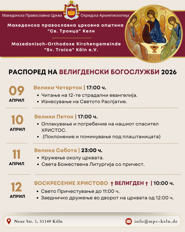 - Заедничко дружење во дворот на црквата од 12:00 ч.